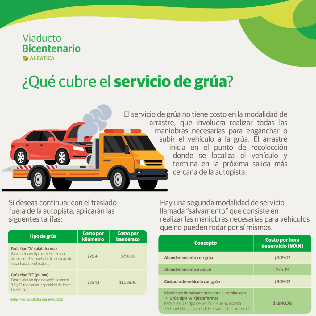 El servicio de grúa no tiene costo en la modalidad de arrastre