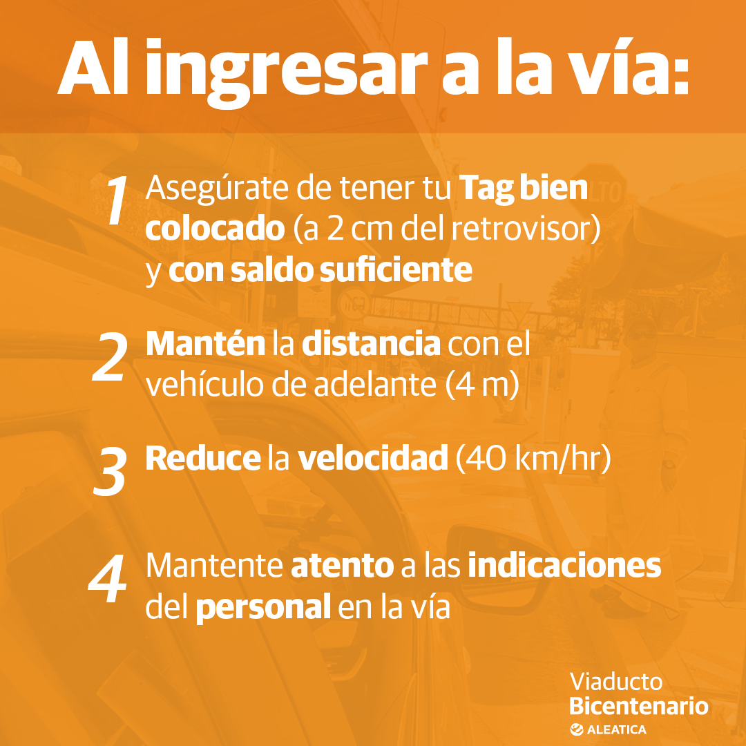 Es responsabilidad del conductor asegurarse que su TAG cuente con saldo suficiente previo al ingreso. Asimismo, deberá: